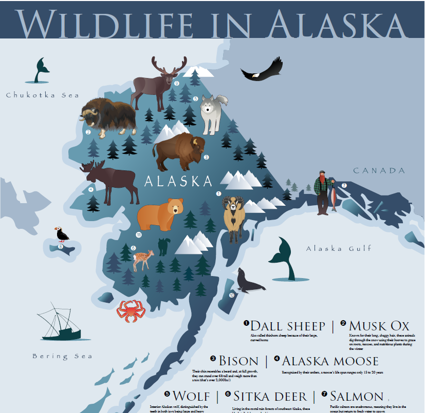 Here's some interesting facts you can printout and share with your students about the Wildlife in Alaska.